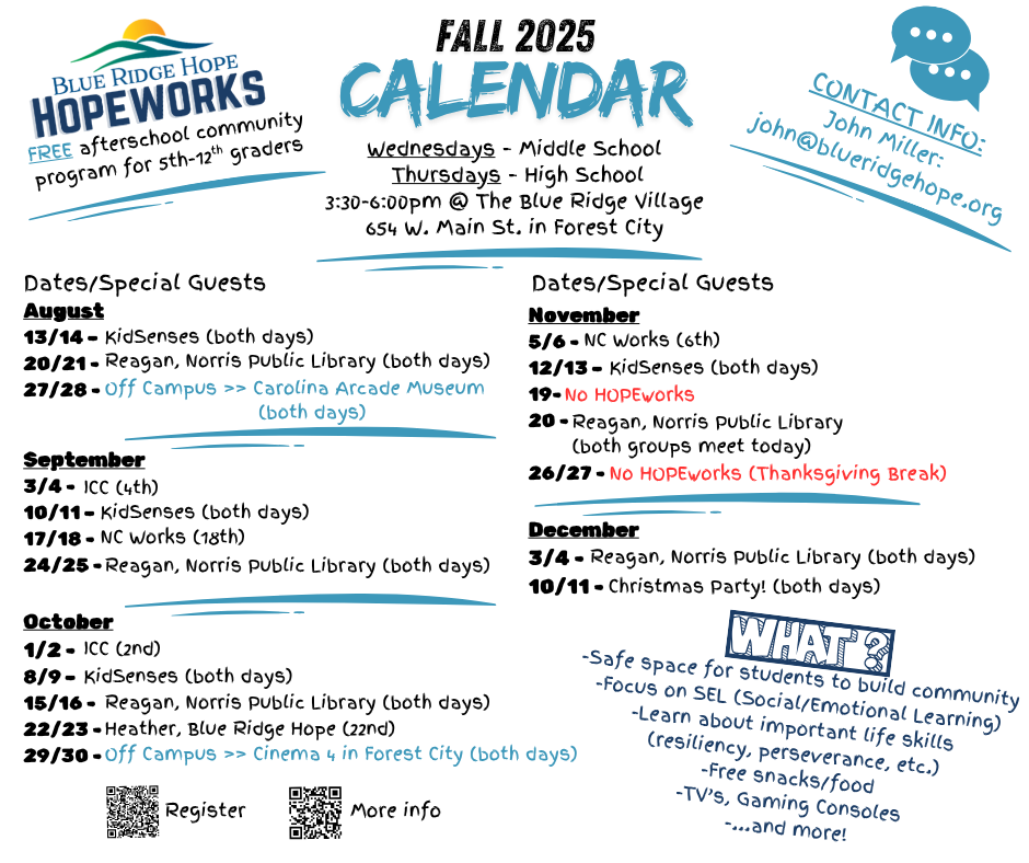 If you are a parent or guardian of a student who may be a good fit for HOPEworks at Rutherfordton, please email John Miller at john@blueridgehope.org.